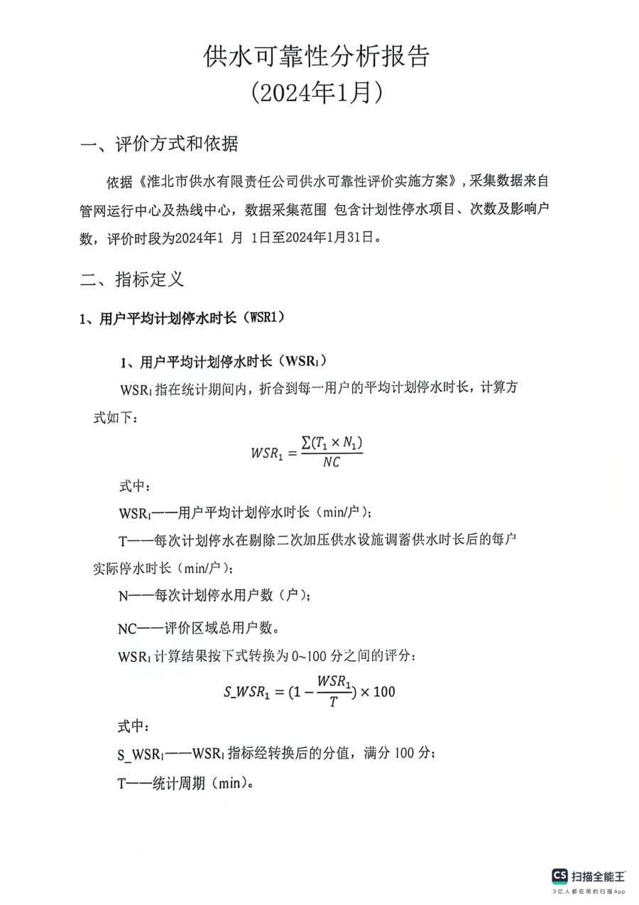 供水可靠性分析報告1月