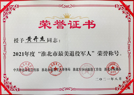 8月13日,從淮北市委宣傳部、淮北市退役軍人事務(wù)局等部門獲悉,供水公司職工黃開杰榮獲2021年度“淮北市最美退役軍人”榮譽(yù)稱號。